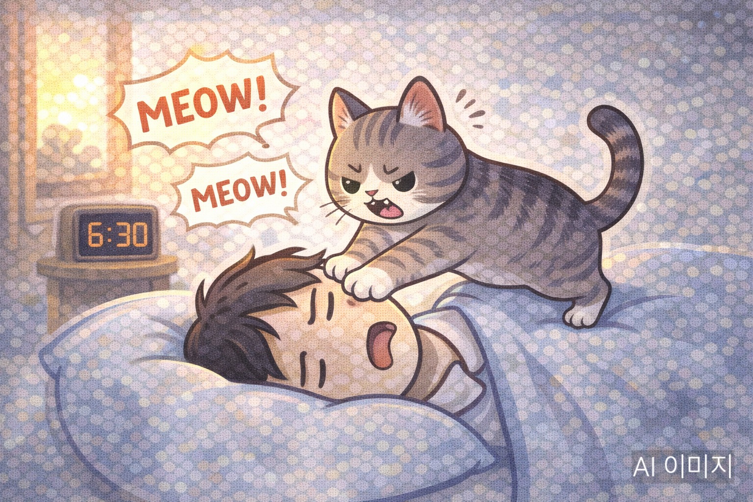 포근한 이불속에서 단잠을 자고 있는데, 갑자기 묵직한 발바닥이 몸을 누르는 느낌에 잠에서 깬 적이 있으신가요? 고양이가 아침마다 집사 위를 걸어 다니거나 앞발로 꾹꾹 누르는 행동은 참 귀엽지만, 때로는 잠이 부족해 힘이 들기도 합니다.