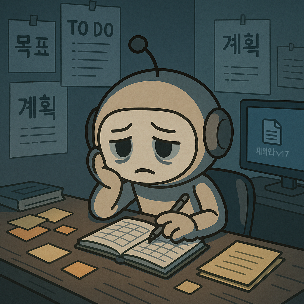 계획만 세우다 하루가 다 간 적 있으세요?계획 세웠다는 이유로 ‘나 오늘 뭔가 한 것 같다’ 착각했던 적, 그걸 지키지 못한 죄책감에 다시 처음부터 계획을 짜느라 또 시간을 보낸 적, 있지 않으세요?해야 할 일은 분명히 있는데, 어디서부터 어떻게 시작해야 할지 몰라서 그냥 계획만 계속 정비하게 되는 상태.머리는 바쁜데 몸은 그대로인 상태.계획을 지키지 못한 나 자신이 하루의 가장 큰 스트레스가 되는 날들.그게 반복되면 계획 세우는 것조차 겁이 나요.‘이번에도 또 안 할 것 같아서’‘계획이 또 실패로 돌아갈까 봐’어느새 플래너를 펴는 손이 망설여져요.혹시 지금, 그런 상태에 계신가요?왜 우리는 계획만 세우고 실행은 못 할까요첫째, 계획은 뇌에게 이미 보상감을 줘요.계획을 세우는 순간 뇌는 도파민을 분비해요..